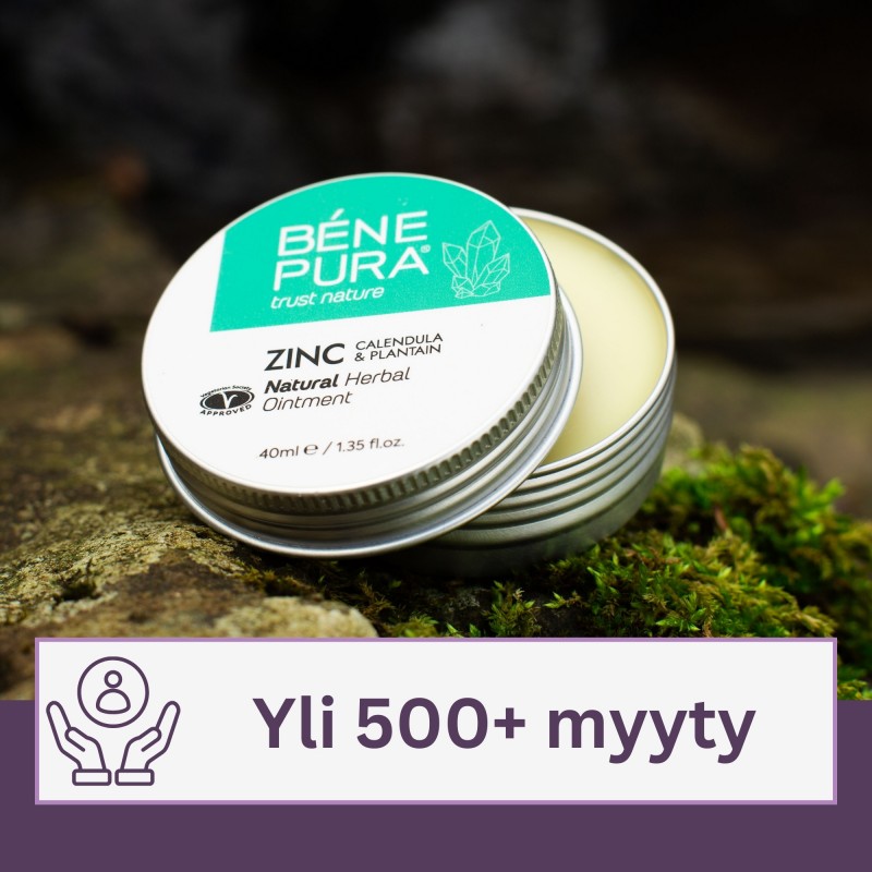 Sinkkioksidi ja yrtit voiteessa: